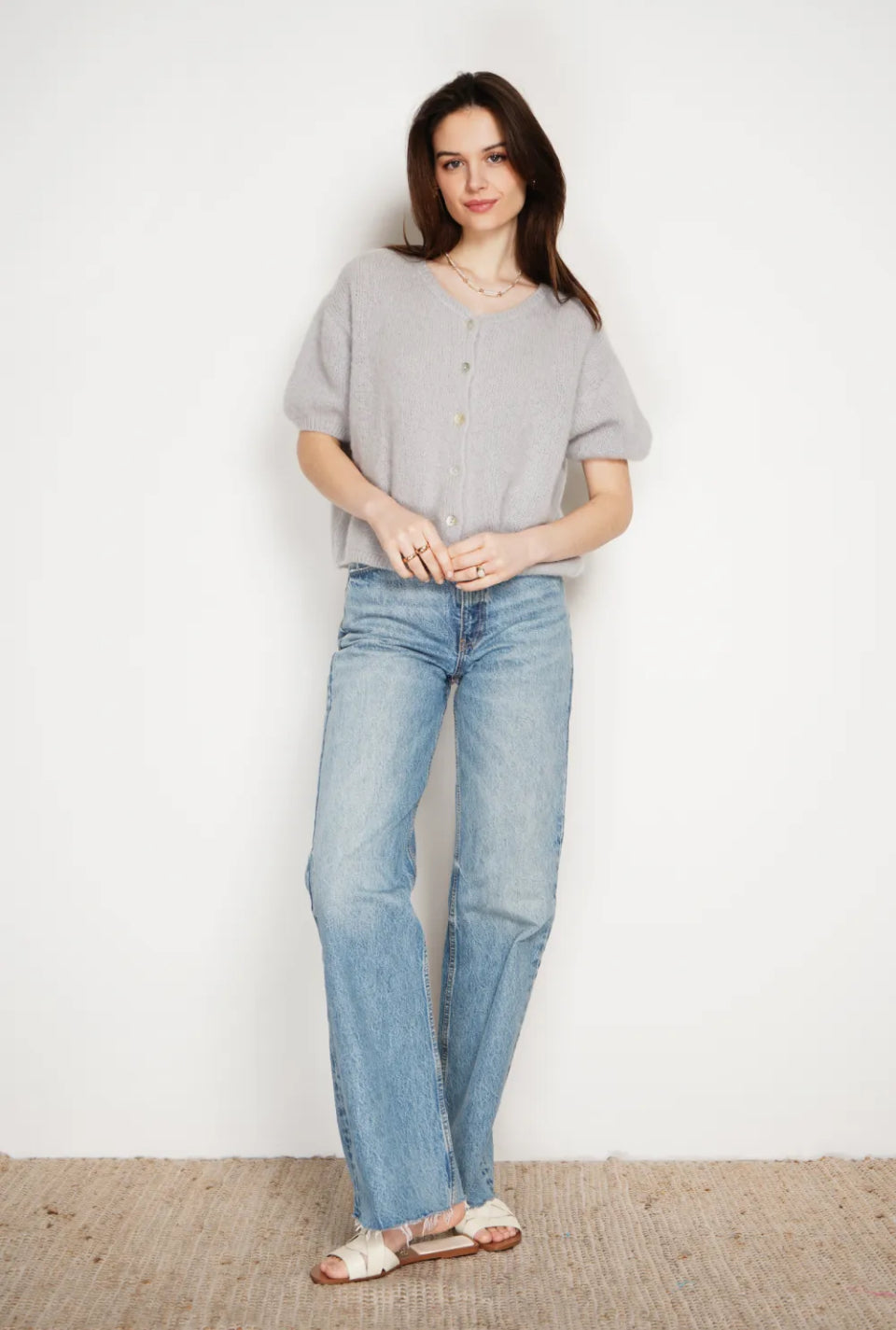 Ce pull court en maille allie douceur & légèreté grâce à son mélange raffiné de Kid Mohair & Laine.Sa coupe oversize , associée à ses manches 3/4 , lui donne une allure moderne . Idéal à porter avec un jean où une jupe fluide, où également avec une chemise en dessous.